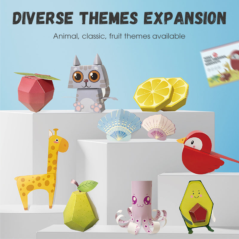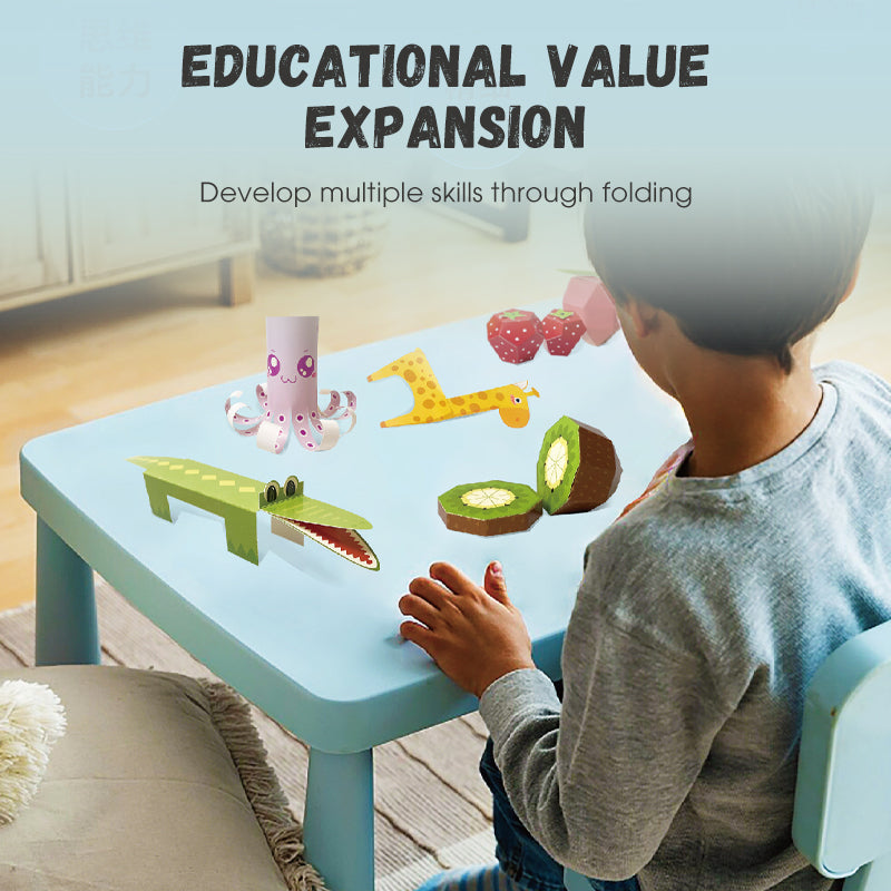A 3D ORIGAMI MAGÁVAL RAGADÓ ÉLMÉNYE: A 3D kézzel készített origami könyv magával ragadó gyakorlati tevékenységet kínál. Három készletben, összesen 49 egyedi mintával, állatok, gyümölcsök és klasszikus formák kelnek életre 3D-ben. Ez nemcsak órákig tartó szórakozást nyújt, hanem a gyerekek kreativitását, finommotorikus készségeit és térbeli képzelőerejét is fejleszti, miközben a sík papírt részletes 3D-s modellekké alakítják.