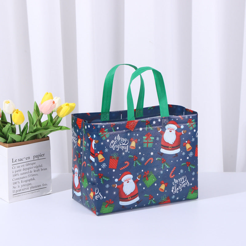 Kiváló minőségű anyag: Kiváló minőségű nem szőtt anyagból készült. A karácsonyi táskák elég erősek és tartósak, és ajándékok szállítására is használhatók, csökkentve a szakadás kockázatát. A szagú műanyag táskákat ezekkel a szuper stílusos bevásárló táskákkal helyettesítheti.