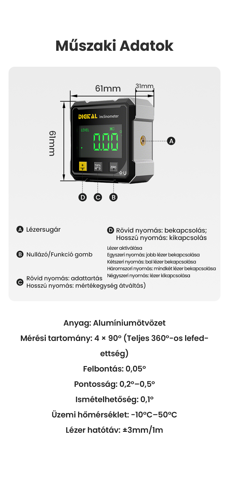 📐 NĂ©gyoldalas mĂĄgneses digitĂĄlis szögmĂ©rƑ lĂ©zerrel đŸ‘·đŸ‘