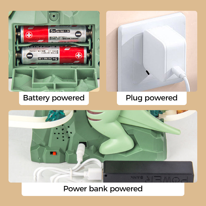 DINAMIKUS ZENE – A játékkészlet élénk zenét tartalmaz, amely használat közben szól, fokozva az interaktív szórakozást. A dinamikus dallamok szinkronban vannak az autó mozgásával, így stimuláló érzékszervi élményt teremtve, amelyet a gyerekek imádni fognak, miközben a dinoszaurusz versenypályával játszanak.