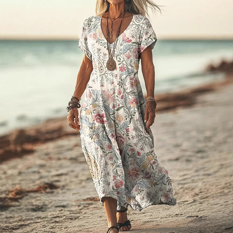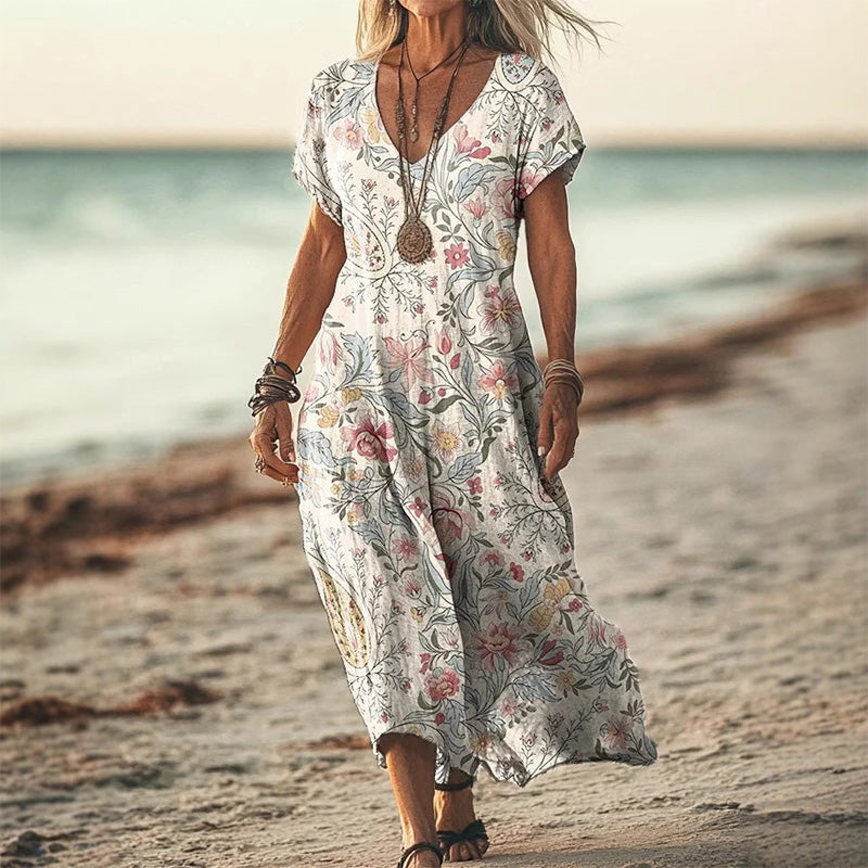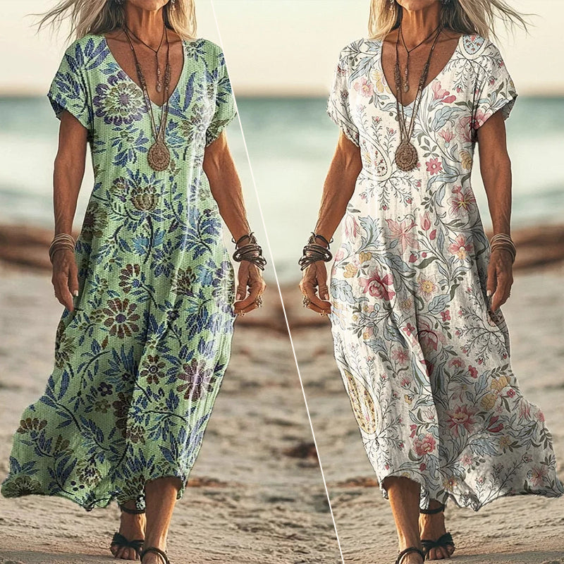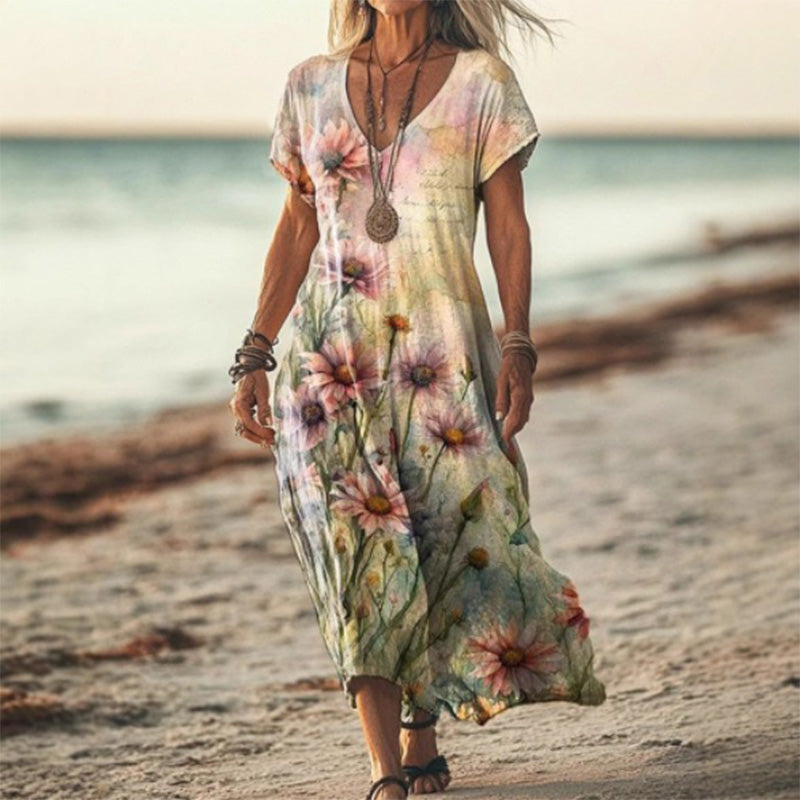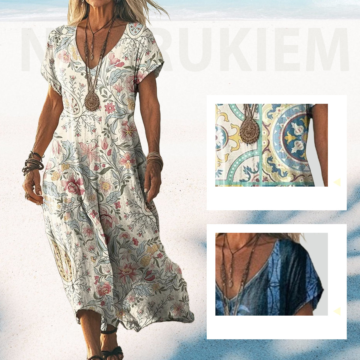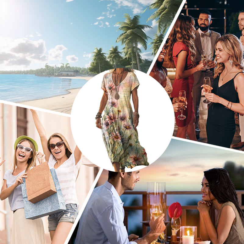 Csomagtartalom: A csomagban található: 1 * Elegáns, laza szabású női ruha, szív alakú nyakkivágással és nyomtatással.