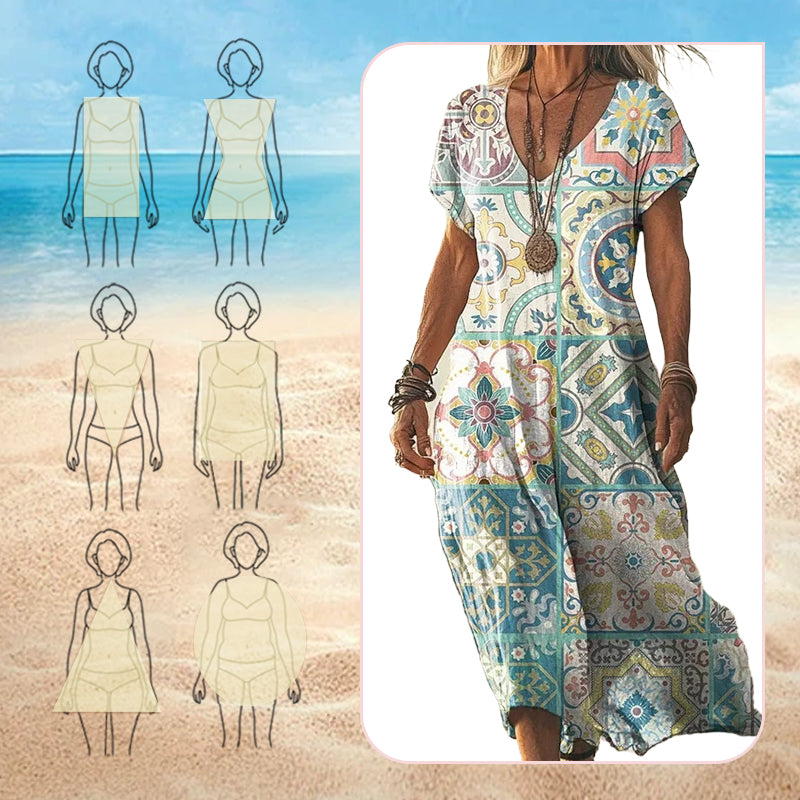 TÁGAS ÉS KÉNYELMES TERVEZÉS: A ruhát laza szabással tervezték, amely gyönyörűen esik az egész napos kényelem és a könnyed elegancia érdekében, természetesen kiemelve szépségét.