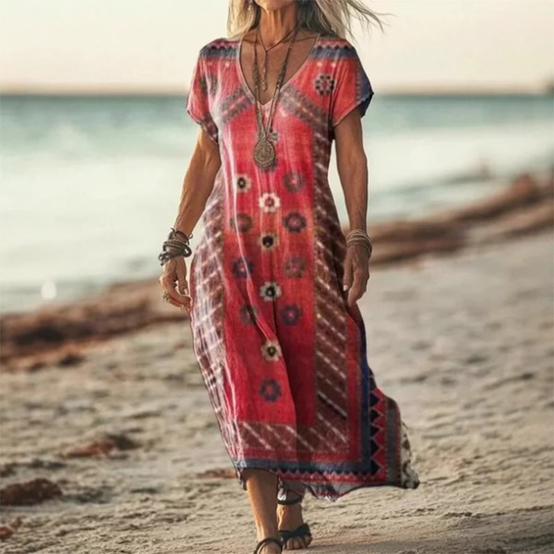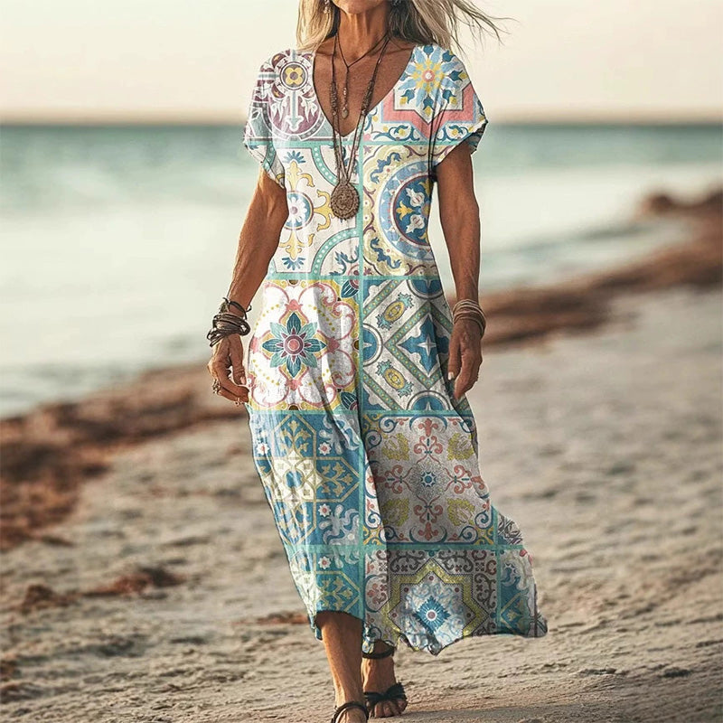SZEMÉLYES TERVEZÉS: Ez a ruha merész, élénk mintával rendelkezik, amely feldobja a stílusodat, modern, elegáns megjelenést teremtve, amely tökéletes alkalmi kirándulásokhoz vagy fél-formális eseményekhez.