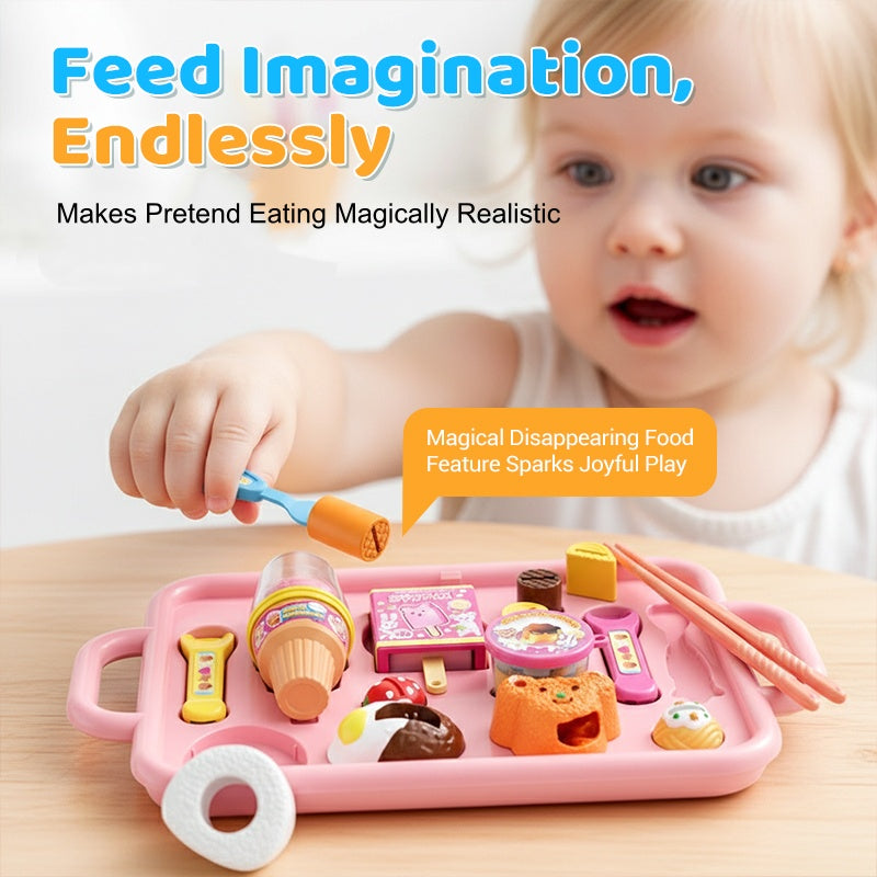 INTERAKTÍV ETETÉSI MÓKA: Ez az egyedülálló kialakítás lehetővé teszi a gyerekeknek, hogy szimulálják az etetést és az evést, így a játék még élvezetesebbé válik. Az étel eltűnik az evőeszközben, majd visszaszerezhető, ami varázslatos élményt nyújt, és megragadja a gyerekek fantáziáját.