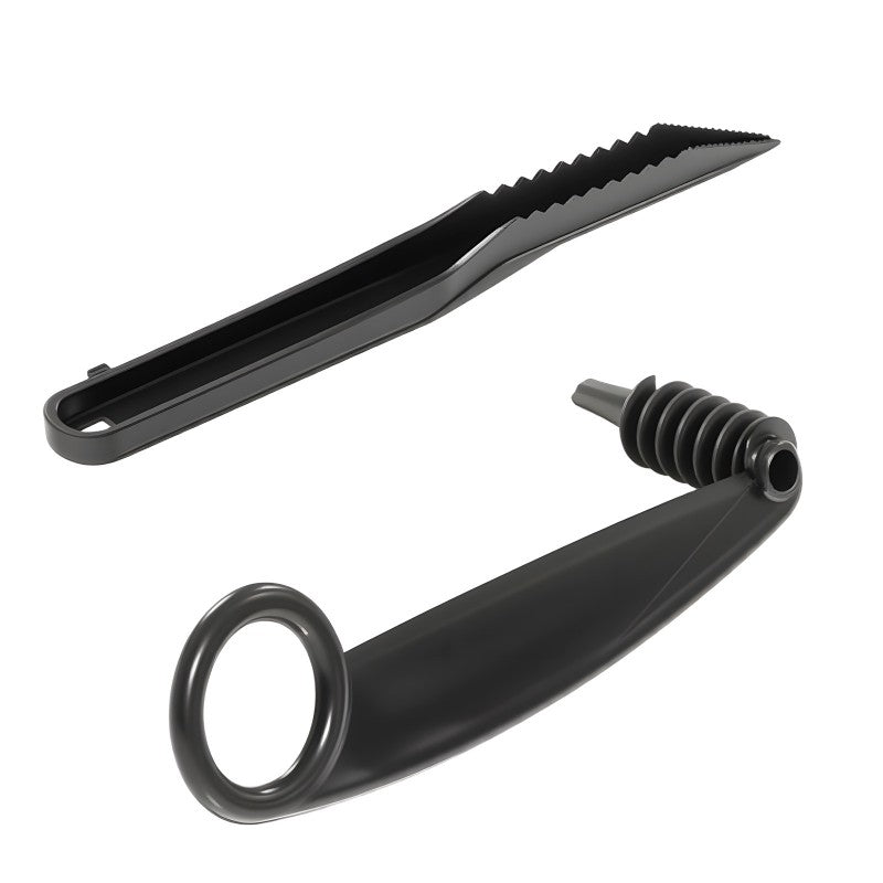 ERGONOMIKUS FOGÁS PROFESSZIONÁLIS VEZÉRLÉSSEL – A karcsú, 117 mm-es (spirálkés) és 108 mm-es (V alakú vágókés) hosszúságú kések úgy fekszenek a kézben, mint egy toll. A texturált markolatok biztos, csúszásmentes fogást biztosítanak. Mindössze 80 g és 70 g súlyukkal könnyedén csúsznak a puha mangókon vagy a kemény gyökereken – még remegő kezekkel is precízen lehet velük vágni.