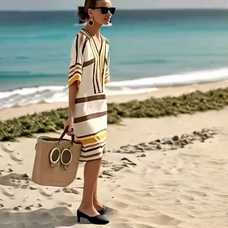 A csomag tartalmazza: 1×Női csíkos V-nyakú ruha