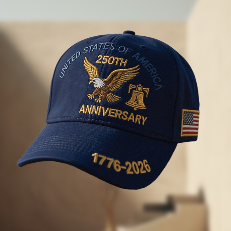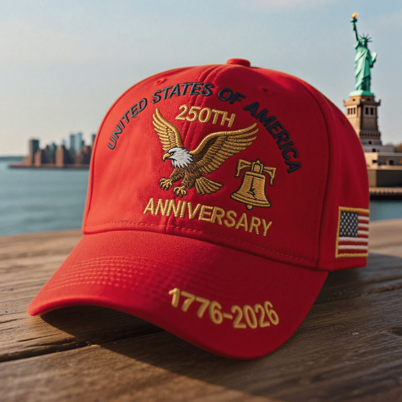 ÜNNEPI TERVEZÉS: Ez a sapka a 250 éves szabadságot ünnepli, merész „250TH” felirattal és sas motívummal. Viselésével büszkeségét és összetartozását fejezheti ki, így a nemzeti örökség és a kollektív identitás szimbólumává válik.