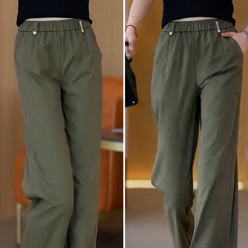 ELASZTIKUS DERÉK – Rugalmas, elasztikus derékrésszel ellátott nadrág, amely kényelmes és biztonságos illeszkedést biztosít különböző testalkatokhoz. A derékrész gombok és cipzárak nélkül is könnyen felvehető, így az öltözködés gyors és egyszerű, miközben a nadrág elegáns megjelenését megőrzi.